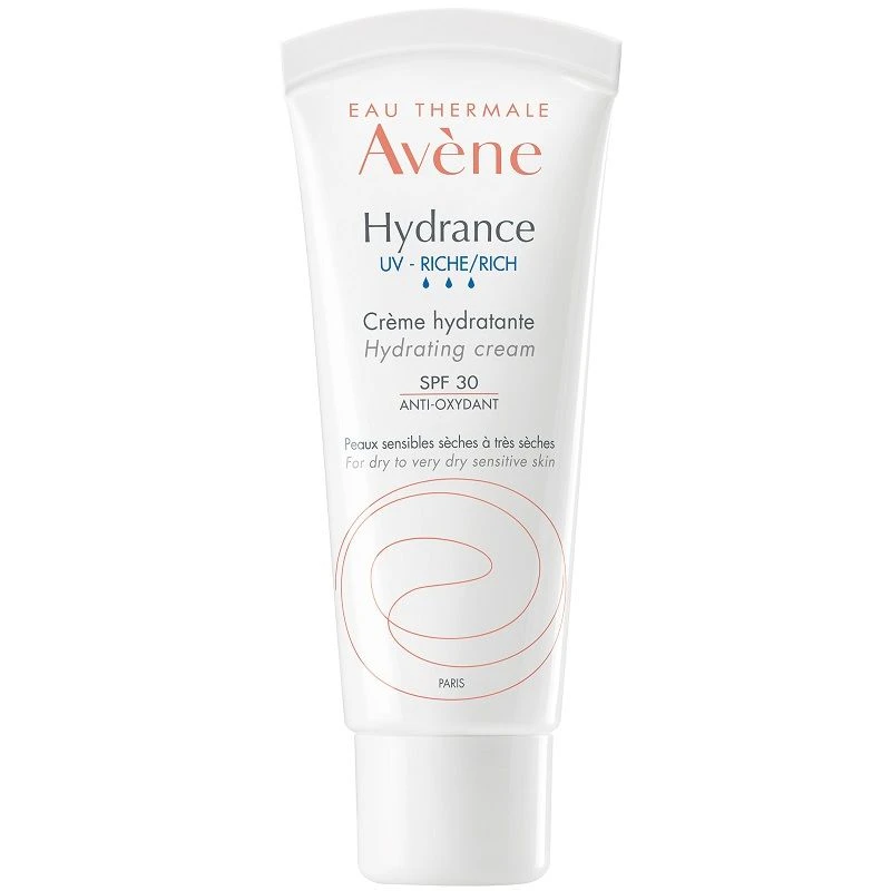 Avene Hydrance UV Rich Hydrating Cream SPF30 is a rich hydrating cream with SPF30 protection for dry to very dry sensitive skin. Rich, softening daily moisturiser to instantly restore hydration reservoirs. Provides 24-hour hydration leaving skin immedialty refreshed and radiance whilist preventing wayer from evaporating from the skin. Hydrates your skin while protecting it against UVA-UVB rays, free radicals, and pollution. Smoothness and luminosity are restored and fine dehydration lines are minimised. Specifically designed for dry to very dry sensitive skin.