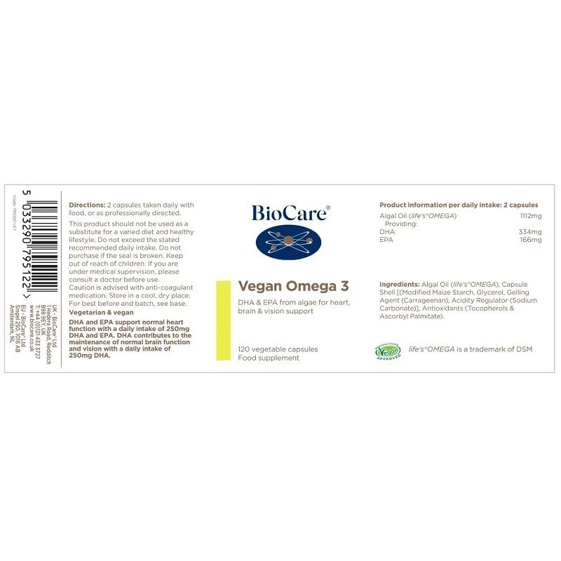 If you don’t require a vegan omega-3 supplement, we recommend: BioCare Mega EPA Marine Caps