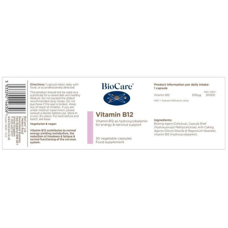 Vitamin B12 contributes to normal energy yielding metabolism, homocysteine metabolism and reduction of tiredness and fatigue. BioCare’s Vitamin B12 is presented in conjunction with co-enzyme B12 to improve activity and absorption.