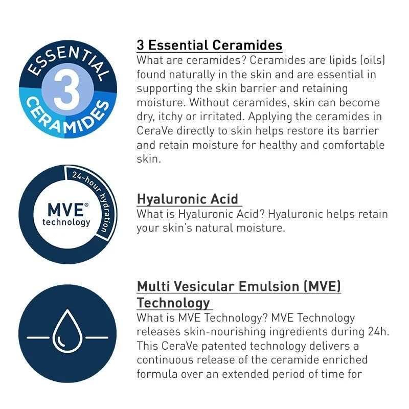 - MVE Technology: This patented delivery system continually releases moisturizing ingredients for all day hydration.
