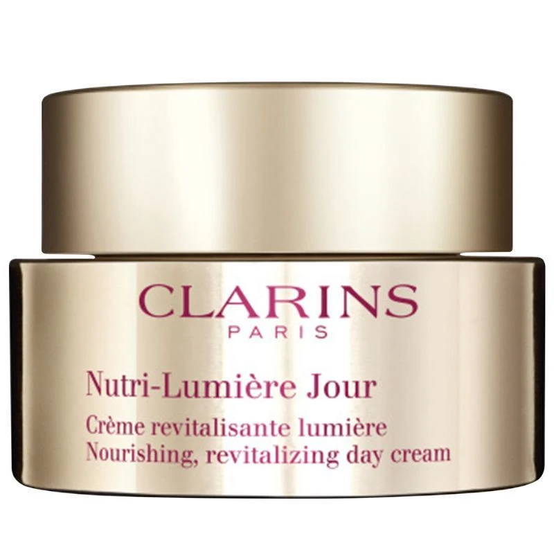 Clarins Nutri-Lumiere Nourishing Revitalising Day Cream 50ml is a nourishing, nutrient-rich anti-aging day moisturiser formulated to restore vitality to mature skin that is dull, fragile, and severely dry. The melting, non-greasy, oil-infused texture leaves skin feeling smooth, nourished, and radiant.