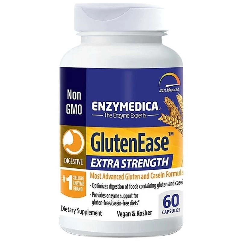 GlutenEase Extra Strength contains Protease Thera-blend (G2) enzymes along with DPP-IV activity for providing more than double the digesting power for foods containing gluten and casein compared to GlutenEase. Starch-digesting amylase enzymes assist in the digestion of the carbohydrate portion of grains, such as wheat, which contain gluten.