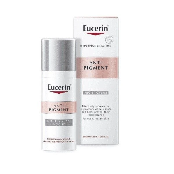 Eucerin Anti-Pigment Night Cream is clinically and dermatologically proven to reduce the appearance of dark spots and uneven skin tone caused by hyper pigmentation. It contains B-Resorcinol which has been shown to inhibit melanin production (in-vitro) and Glycyrrhetinic acid to support your skin’s own processes. Enriched with nourishing dexpanthenol, the formula intensively moisturises while supporting your skin’s nightly regeneration process. Your skin will start looking visibly brighter and more even with regular use.