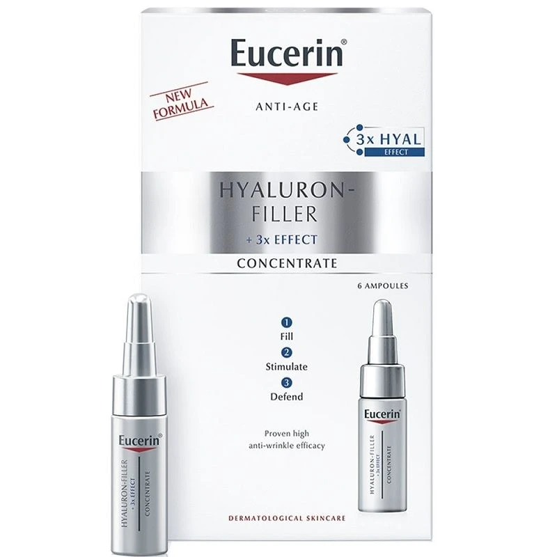Eucerin Hyaluron-Filler Concentrate is an intensive anti-wrinkle serum to be used in combination with your daily, anti-age routine. The formula combines high and low molecular Hyaluronic Acid to target prematurely ageing skin where wrinkles originate and additionally contains bio-active Glycine Saponin to support skin’s natural production of Hyaluronic Acid. With regular use, skin feels smoother and more youthful.