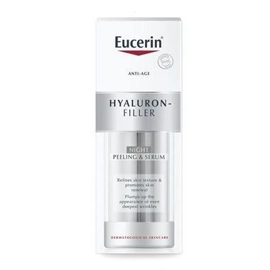 The two formulas combine on your skin to make it feel smooth. This innovative product is designed to be used overnight and, when used regularly, Eucerin Hyaluron-Filler Night Peeling & Serum is clinically and dermatologically proven to refine skin texture and promote skin renewal while plumping up even the deepest wrinkles. Skin is visibly smoother and more radiant and appearance of the pores are refined.
