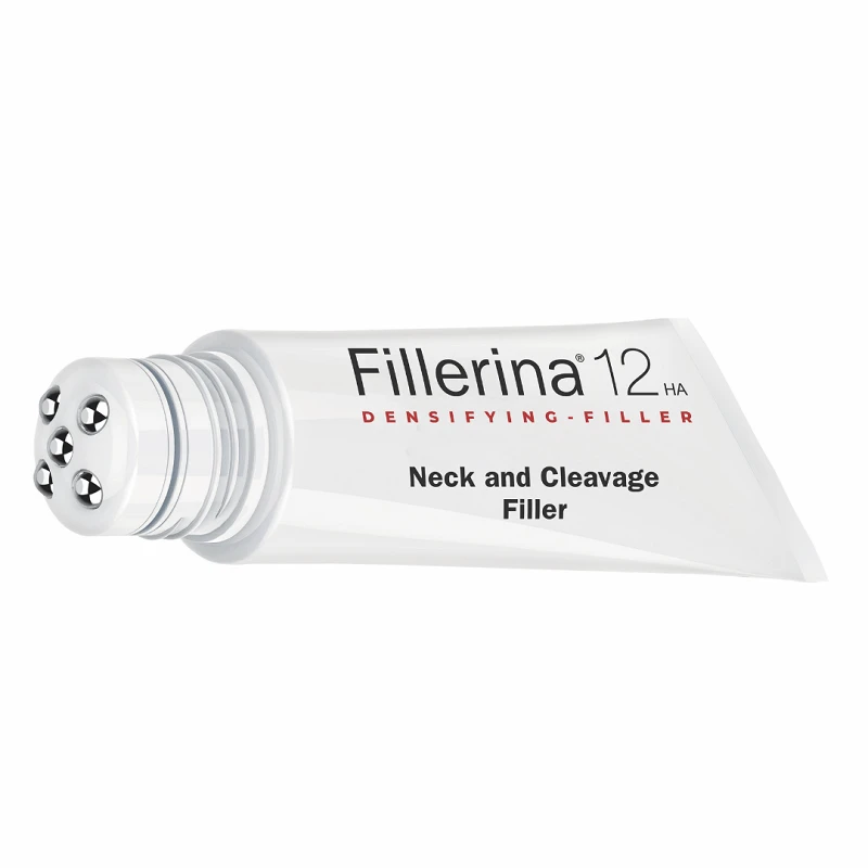 Fillerina 12HA Densifying-Filler Neck and Cleavage Grade 3 is a dermo-cosmetic gel treatment that helps the filling of neck and cleavage circular wrinkles and provides the tissues of these specific areas with a firming effect. The filling effect is ensured by the highly modulated concentration of 12 molecules of Hyaluronic Acid, while 3 Collagens and 2 Elastins offer a toning and firming effect on the tissues of neck and cleavage.