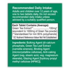 HealthAid Green tea extract tablets are dietary supplements that contain concentrated levels of beneficial compounds found in green tea leaves (Camellia sinensis). Green tea has been consumed for centuries and is renowned for its potential health benefits. Green tea extract is derived from the leaves and is often standardized to contain higher levels of certain bioactive compounds, primarily catechins and polyphenols, which are believed to contribute to its health-promoting properties.