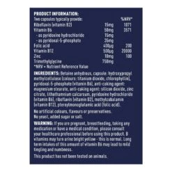 Contraindications: Long term intakes of this amount of vitamin B6 may lead to mild tingling and numbness. B vitamins may turn urine bright yellow – this is normal. Not available in Ireland.