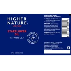 The oil from the Starflower is rich in gamma linolenic acid (GLA), an omega 6 fatty acid that must be obtained through the diet from linoleic acid which is also found in hemp, safflower and sunflower oils or through supplementation. Higher Nature Starflower Oil is extracted from borage seeds, which boasts the highest level of naturally-occurring GLA in any plant, a compound which converts to a useful hormone-like substances called prostaglandins in the body.