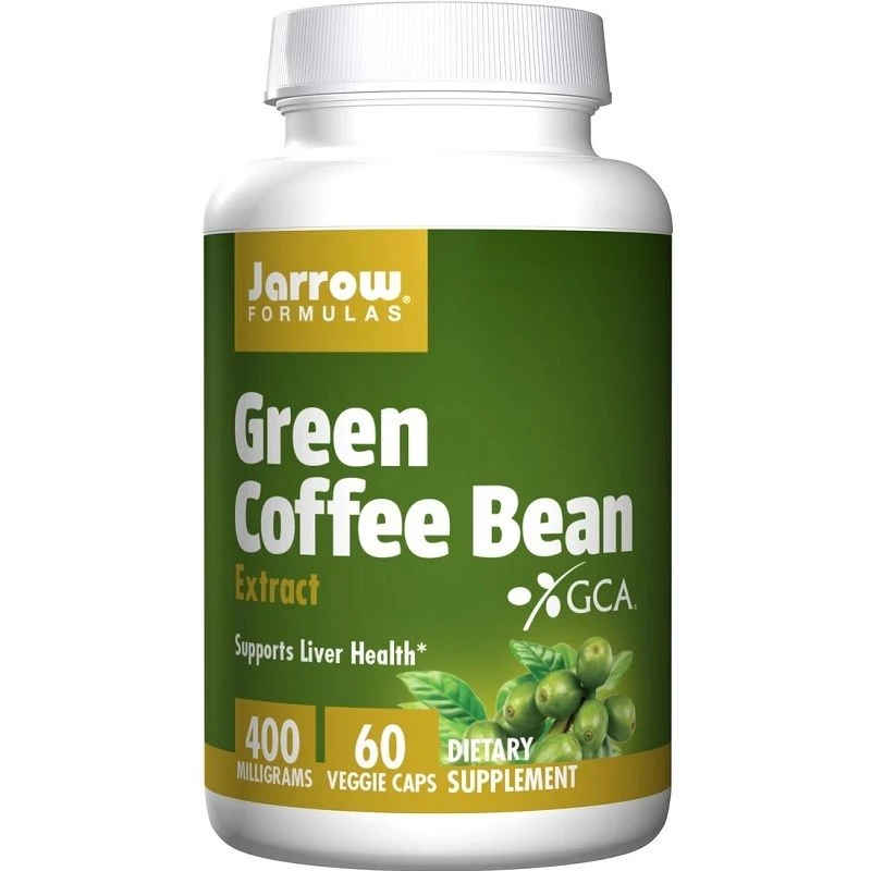 Jarrow Formulas Green Coffee Bean Extract contains antioxidants, especially chlorogenic acids (50% by weight), from unroasted coffee beans.