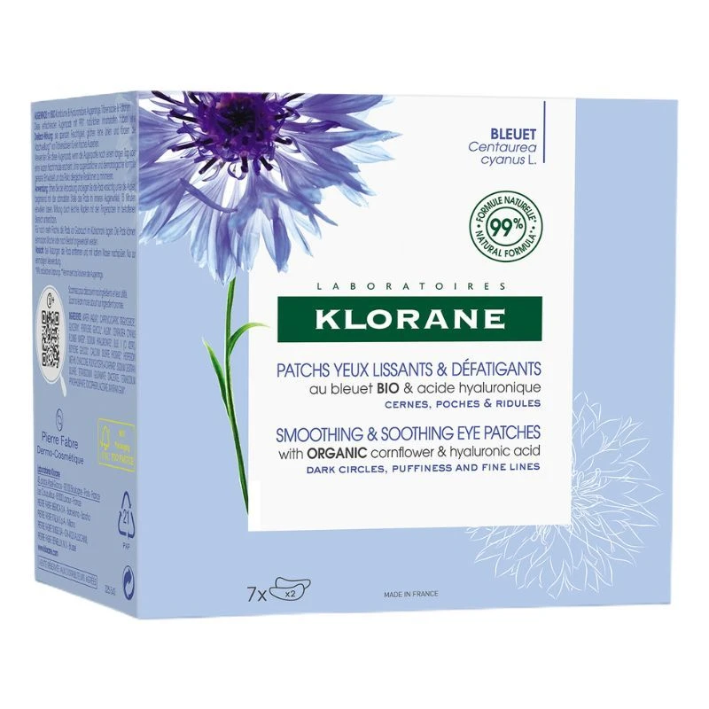 The key ingredients in Klorane Smoothing & Soothing Eye Patches are Cornflower and Hyaluronic Acid.