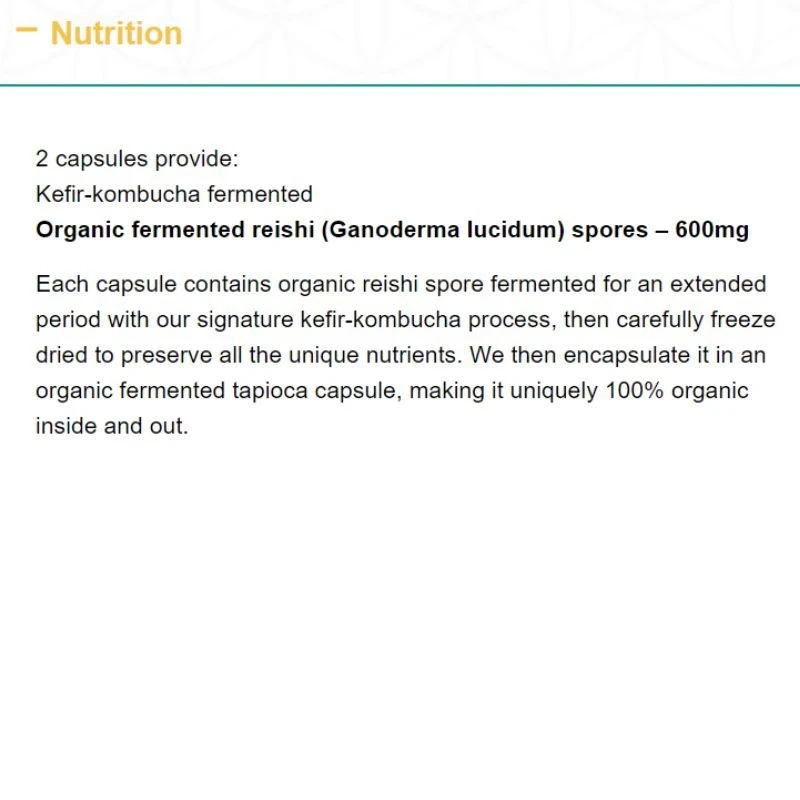 Organic Fermented Reishi Spores is rich in valuable micronutrients, enzymes, and full-spectrum compounds to bring balance and harmony to the body.