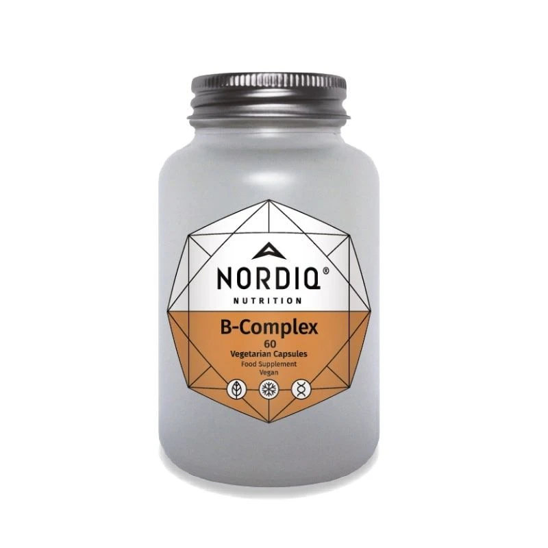 B-vitamins are needed for normal energy metabolism, the function of nervous system and cognitive functions. NORDIQ Nutrition Vitamin B Complex includes all bioactive, co-enzyme forms of B-vitamins. The adaptogens in the product can support normal energy metabolism and functioning of the nervous system.