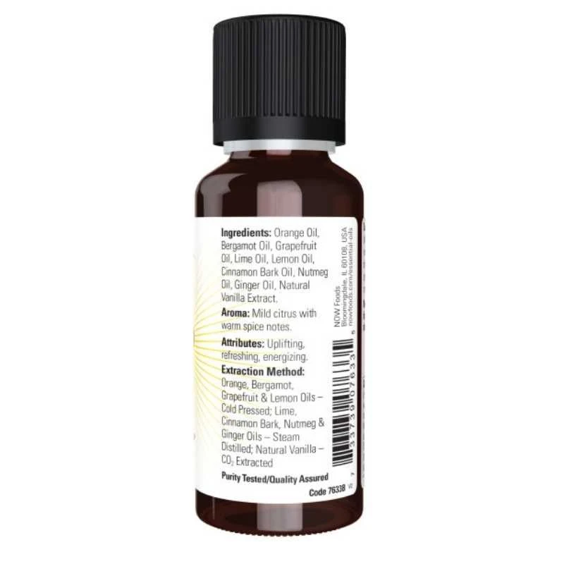 Miles oil blend has a mild citrus with warm spice notes aroma with attributes that are uplifting, refreshing, energizing. Extraction Method: Orange, Bergamot, Grapefruit & Lemon Oils – Cold Pressed; Lime, Cinnamon Bark, Nutmeg & Ginger Oils Steam Distilled; Natural Vanilla – CO2 Extracted.