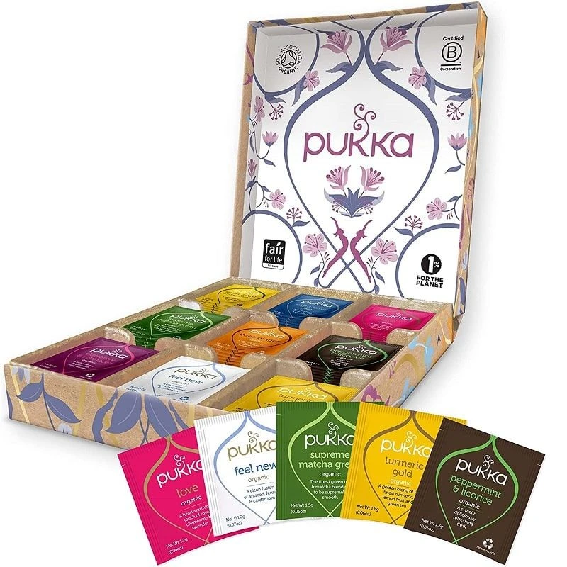 Pukka’s beautiful tea selection box is the perfect self-care gift to let your loved ones know you care about them. Made from premium recyclable packaging and finished with intricate gold foiling details and pukka flourishes, our selection boxes are the perfect thoughtful gift for all your friends and family, for any occasion. Treat someone you love and give Pukka as a valentine’s gift, birthday present, thinking of you gift or thank you gift. 45 sachets of organic herbal tea.