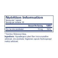 Zinc 15 provides 15 mg of zinc as zinc picolinate, a high absorption mineral chelate. Zinc contributes to the maintenance of normal hair, skin and nails. Zinc also contributes to the normal function of the immune system and normal cognitive function.