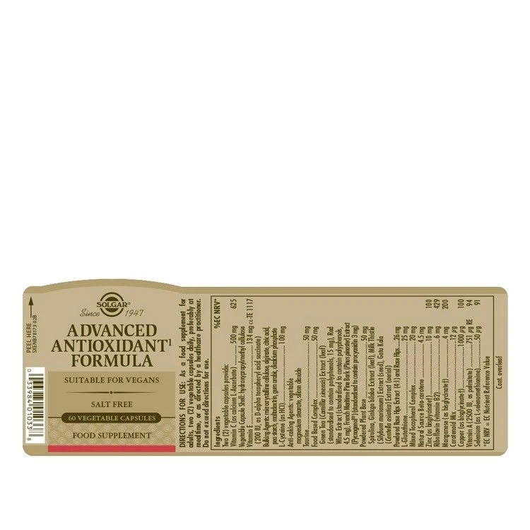 Solgar Advanced Antioxidant Formula is an all-encompassing antioxidant formula containing several vitamins and minerals to assist in minimising the damage caused by free radicals.