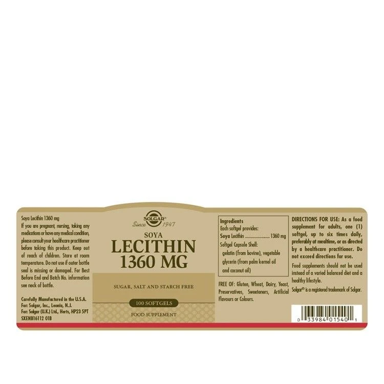 Solgar Soya Lecithin is extracted from the highest quality soy beans available and provides a natural source of this important ingredient needed by every single living cell in the body.