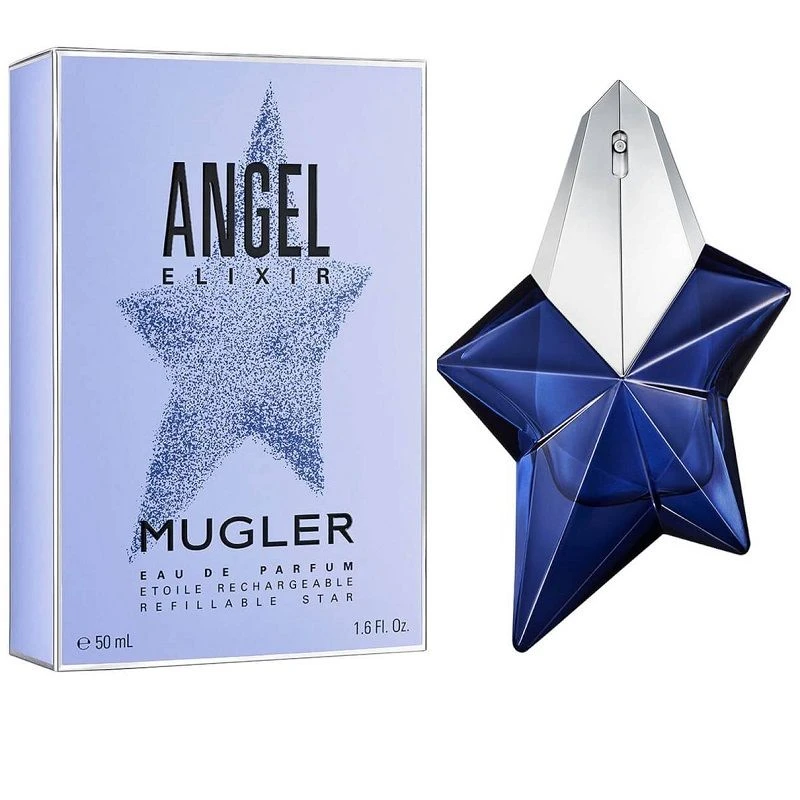 A totally original, woody floral gourmand scent that reinvents what makes Angel Elixir Eau de Parfum so unique. Here, Angel’s signature indulgence turns into a floral Milky Way, captured in Mugler’s iconic star-shaped bottle, morphed into a captivating deep blue. A shimmering spark of metallic spices. An out-of-this-world, floral bouquet invented by Mugler. A nebula of luscious vanilla infusion, empowered by woody Amber Xtreme. More than a fragrance, Angel Elixir is the catalyst to reinvent your reality. Because the real world is not enough.