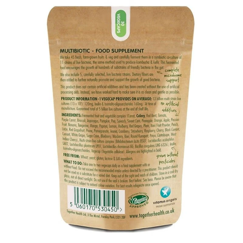 Together Health Multibiotic is a unique gentle, powerful and effective multibiotic formula helps balance the trillions of friendly gut bacteria and improve overall digestive and general health. It encourages the rapid growth of hundreds of substrains of friendly bacteria.
