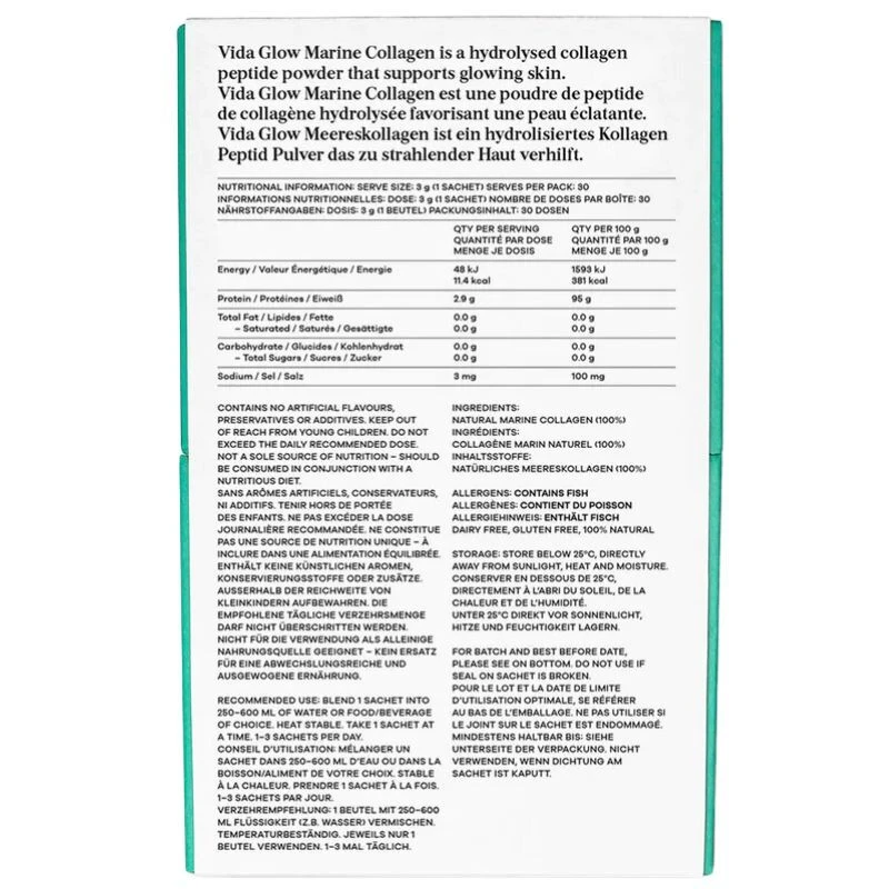 Original Natural Marine Collagen is a collagen peptide supplement made from sustainably-sourced fish skin. Vida Glow’s hydrolysed marine collagen has been activated to boost absorption (so your body can actually use it) and stimulate fresh collagen production. Integrated into your daily routine, our Natural Marine Collagen is clinically proven to smooth fine lines and wrinkles, increase skin firmness and enhance skin elasticity. So you can shine at every age.