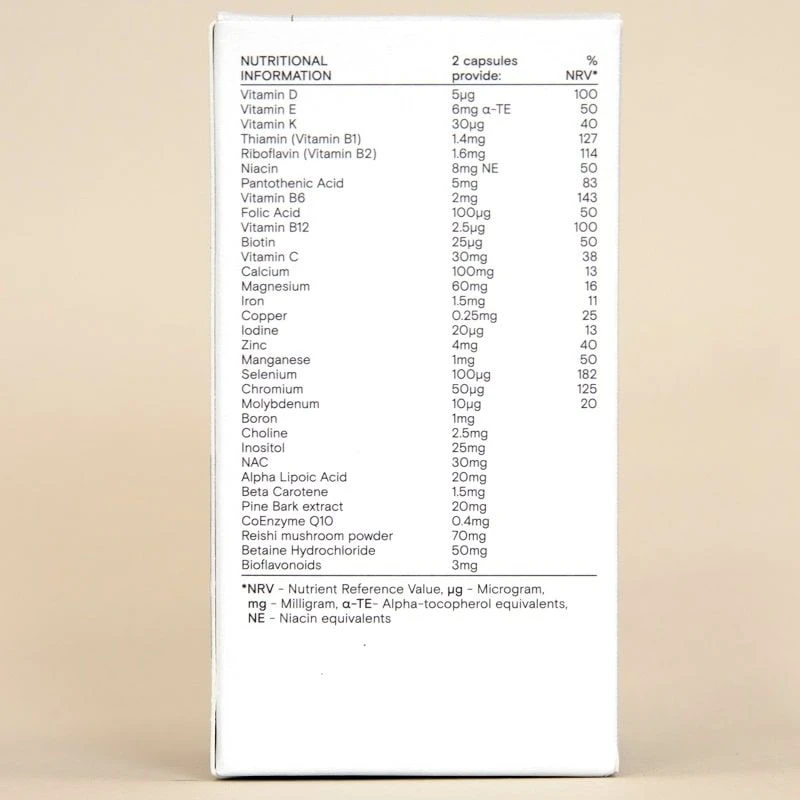 Wild Nutrition bodies produce less stomach acid as we mature and this can affect digestion and the absorption of minerals. Complementary botanicals and mushroom powders including Reishi mushroom, pine bark extract and NAC have been added as natural reinforcement for a busy and demanding lifestyle.
